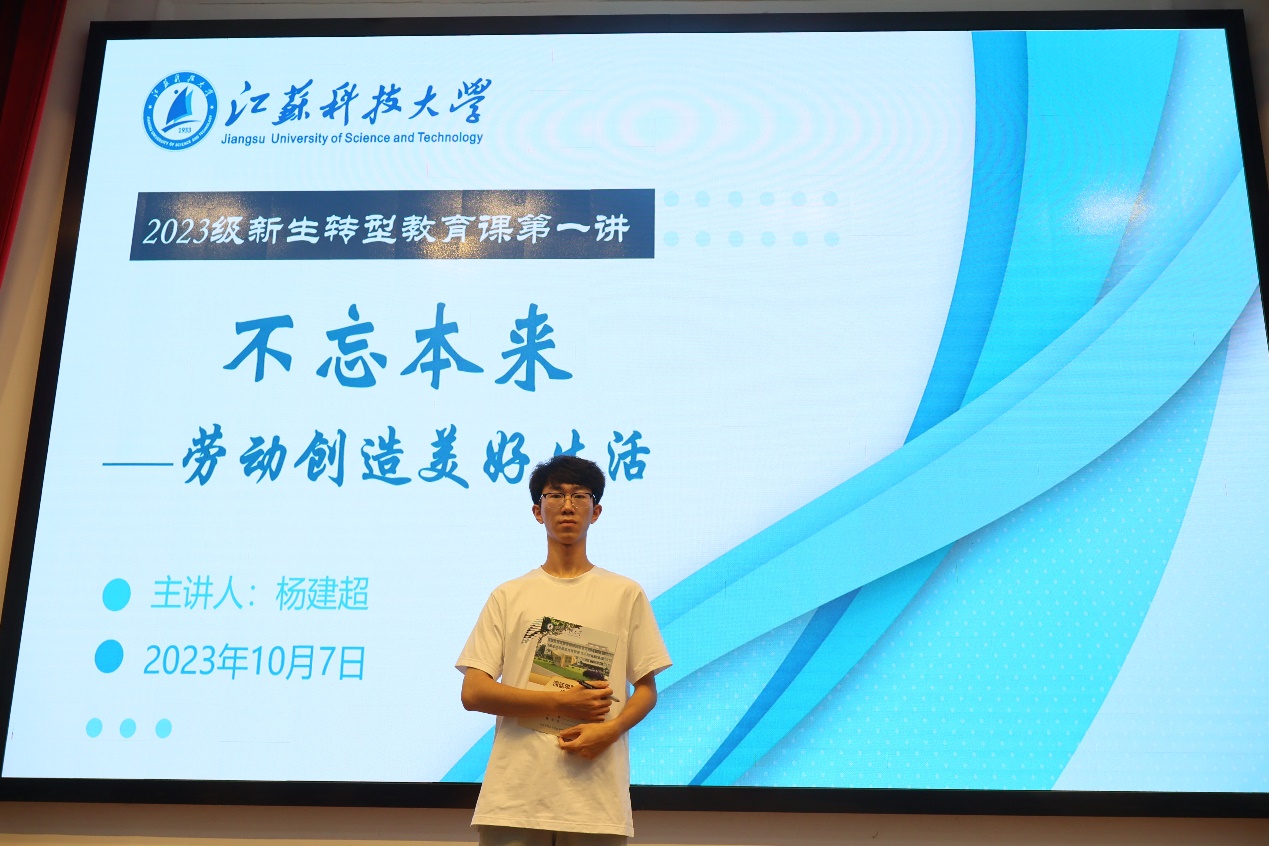 深蓝学院党总支书记、院长杨建超研究员于10月7日下午在梦溪校区演讲厅为2023级新生讲授转型教育主课堂第一讲“不忘本来—劳动创造美好生活”。300余名新生代表在演讲厅主课堂听讲,其余学生和辅导员在分课堂同步学习。