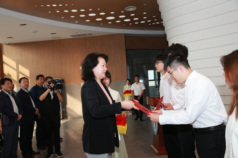 学校面向全体学生选拔首批学生讲解员30名,他们将是“江科大故事”的讲述者,也将承担学校精神文化传播的光荣任务。仪式现场,校长嵇春艳为学生讲解员代表颁发聘书。