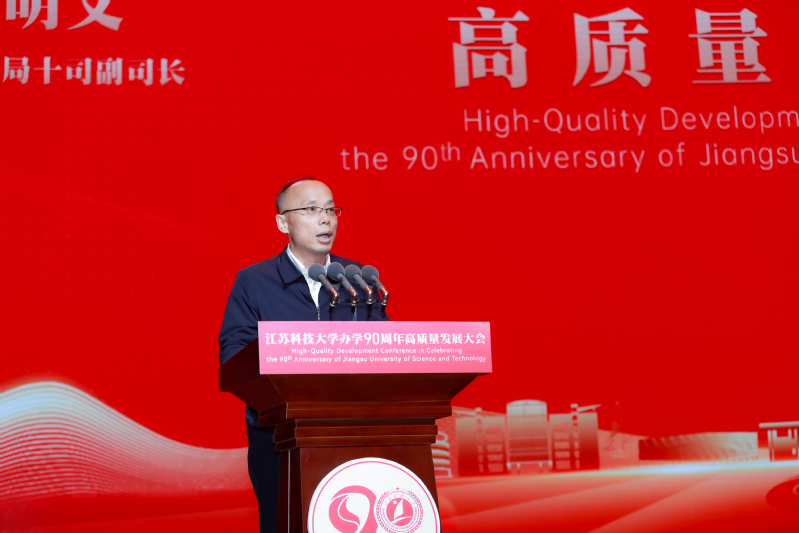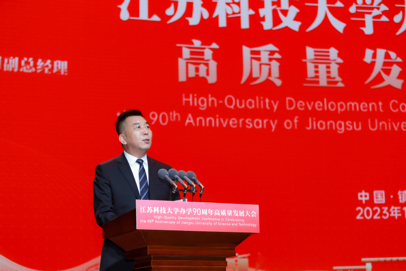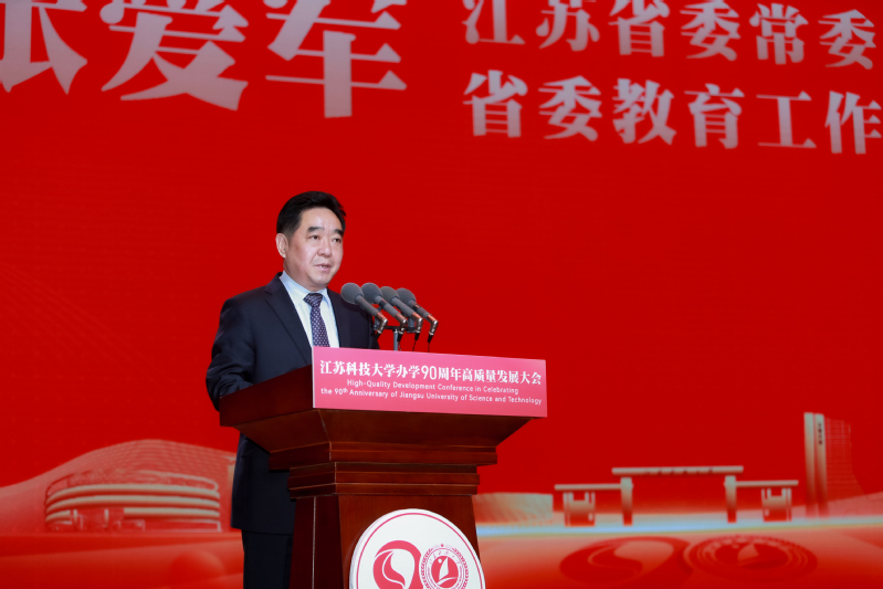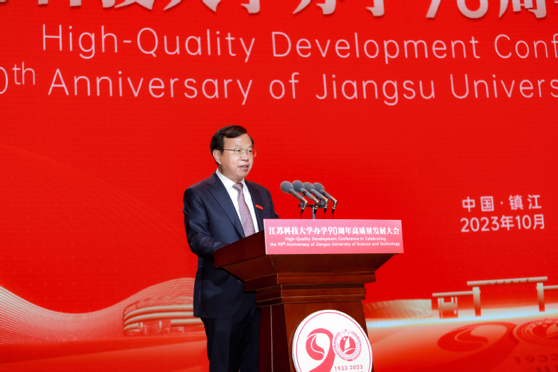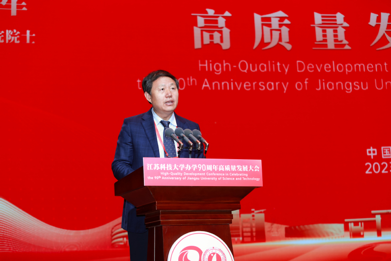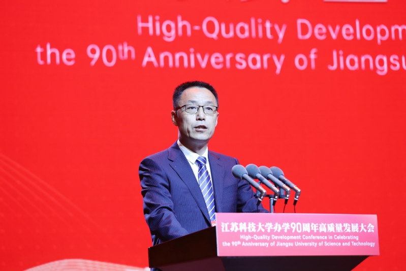 中共镇江市委书记马明龙代表镇江市委、市政府致辞。马明龙说,90年来,一代又一代江科大师生恪守“笃学明德、经世致用”校训,立足“船舶、海洋、蚕桑”特色优势,坚持改革创新、人才强校、特色发展、开放发展,为国家船舶工业、国防建设和经济社会发展培养了众多应用型创新型人才,成就了“中国造船工程师摇篮”的美誉。学校始终与地方同携手、共命运,为全市经济社会发展作出了重要贡献。踏上新征程,我们要牢记嘱托、感恩奋进,共同夯实“办学”这个基础,携手打造名城名校合作典范;深化“育人”这个宗旨,携手共创人才“镇兴”更大荣光;扛起“发展”这个使命,携手谱写“很有前途”崭新篇章。