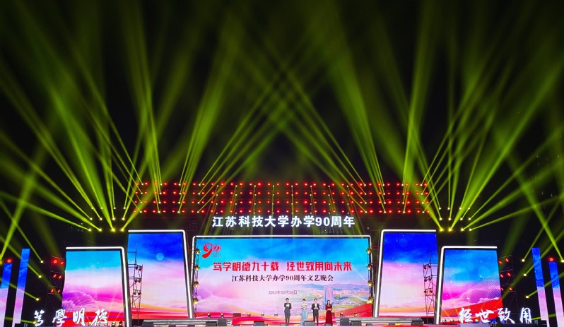 夜幕下的雷竞技RAYBET最新版长山校区灯火璀璨,文理大楼教室灯光错落组成“JUST90”字样,西操场霓虹闪耀,云帆造型的舞台炫彩亮相,雷竞技RAYBET最新版这艘巍巍巨轮已张满风帆,即将从新的历史起点远航。晚会分为“寻梦”“圆梦”“远航”三个篇章,致敬江科大90载风雨兼程的光辉岁月,艺术呈现学校立足“船舶、海洋、蚕桑”办学特色,服务国家战略,托举青春梦、科大梦、中国梦的生动现实,展望学校奋力开创高水平大学建设新局面的美好蓝图。