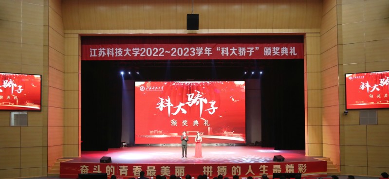 11月9日,雷竞技RAYBET最新版在长山校区船苑剧场举行2022-2023学年“科大骄子”颁奖典礼,表彰在“德、智、体、美、劳”等方面有突出表现、受到省级以上奖励的先进个人和集体。校领导周南平、嵇春艳、潘锦全、安祥卫、李木旺、施伟东、周宏根、叶永林,相关职能部门、各学院负责人,全体辅导员和在校学生参加典礼。
