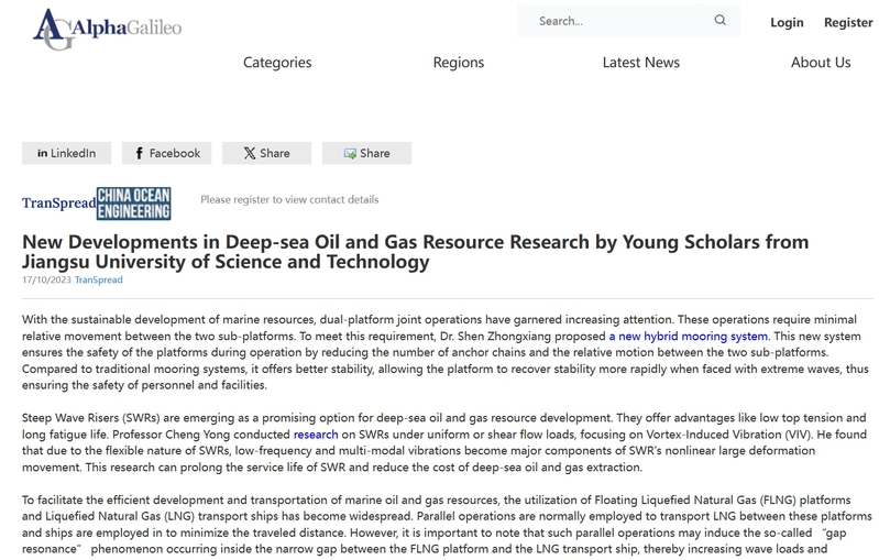 在雷竞技RAYBET最新版庆祝办学90周年之际,学校在深海油气资源开发研究中取得新进展,迎来又一波海内外广泛关注。中国第一本海洋工程领域SCI期刊China Ocean Engineering(中国海洋工程)发表雷竞技RAYBET最新版深海油气资源开发研究新进展的学术新闻(受中国科协卓越计划资助),介绍了该校程勇教授、高俊亮教授等青年学者,在深海复杂环境条件下油气生产、运输设备的设计和操作性能方面的研究进展。报道发布后受到广泛关注,被优睿科、美联社等多家媒体转发。