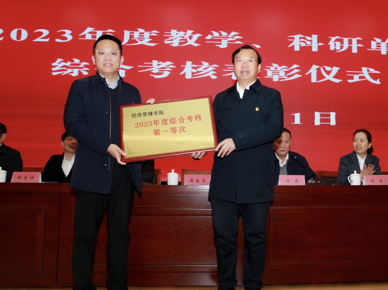 会议表彰了2023年度教学、科研单位,党委书记周南平为第一等次单位颁奖。