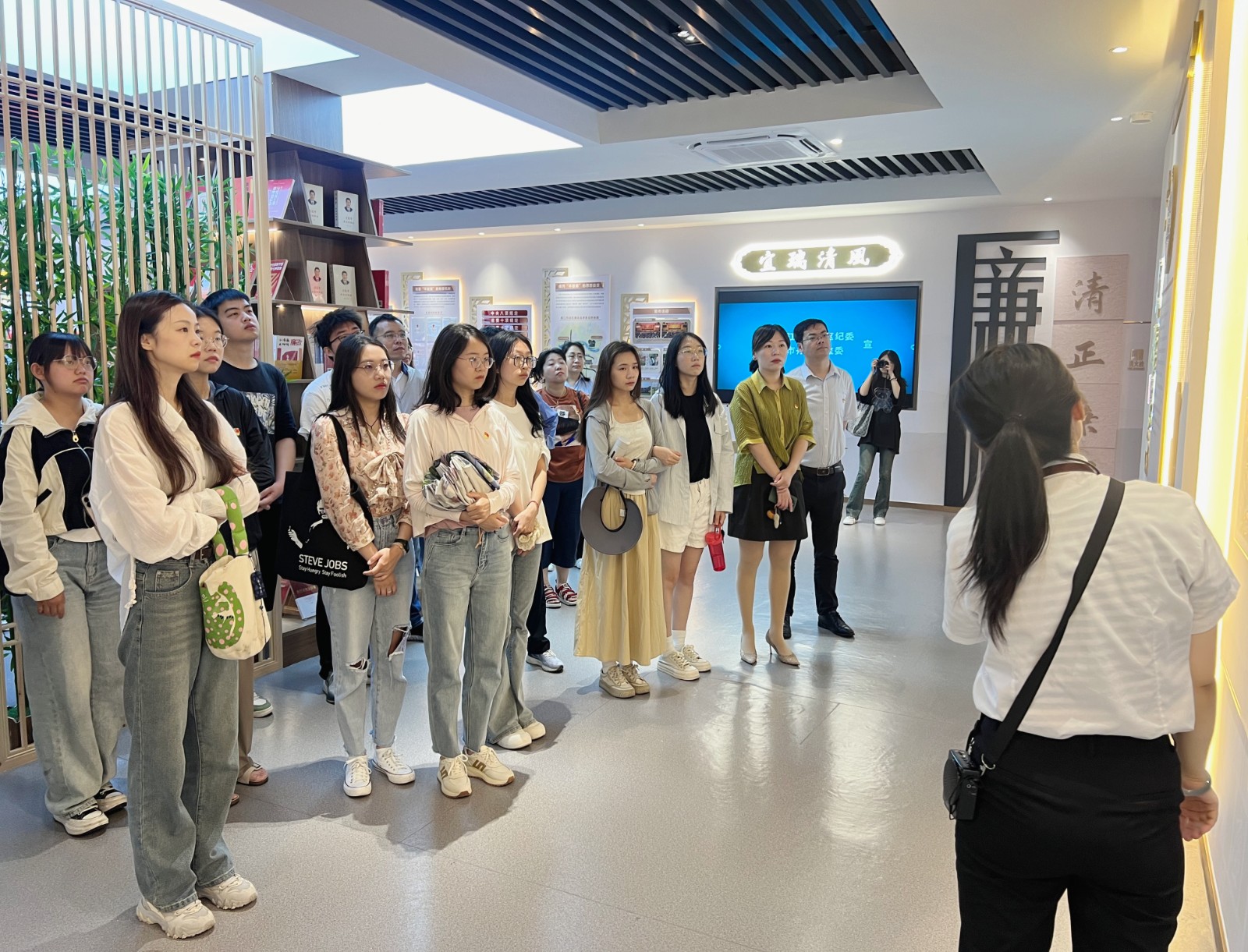 廉洁文化馆基于中国廉洁文化传承,深刻展示了我党坚持反腐倡廉、不断加强自身建设的发展史以及十八大以来一体推进“三不腐”的伟大实践。“心有廉规,行有廉矩;毫厘分明,方能正清修身。”在廉洁文化馆中,经管学院师生党员集体观看了廉政微视频《雕刻可以再来,人生不能重启》,鞭策自己心存戒尺、行不逾矩,警钟长鸣、慎终如始。随后,大家在讲解员的带领下,依次参观学习了文化蕴廉、君子传廉、反腐倡廉和丹心润廉等展区。通过诸多传统文化、家风文化、红色文化中的廉洁元素,了解了历代名人的廉洁文化故事、清廉典型以及发生在我们身边的违纪违法案例,同时回顾了中国共产党的反腐倡廉历程,在潜移默化、耳濡目染中植“廉”于心。