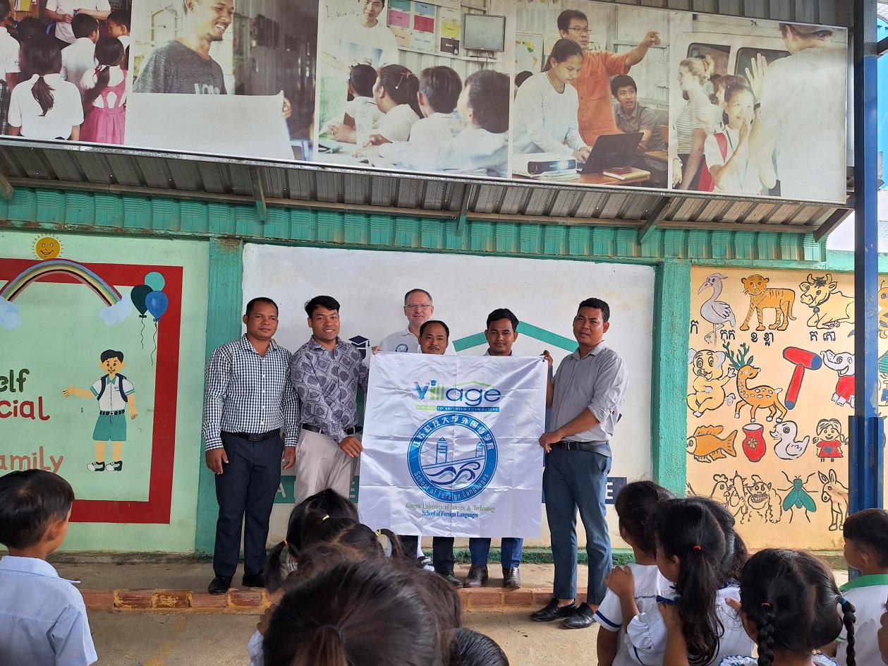 暑假伊始,RAYBET官网外国语学院外籍教师 Conway Mark 奔赴柬埔寨进行国际支教,并将外国语学院为The Village of English 学校的老师和同学们精心准备的文具和祝福转达校方,当地的老师和同学们纷纷对来自江科大跨越国界的爱心表达由衷的感谢。